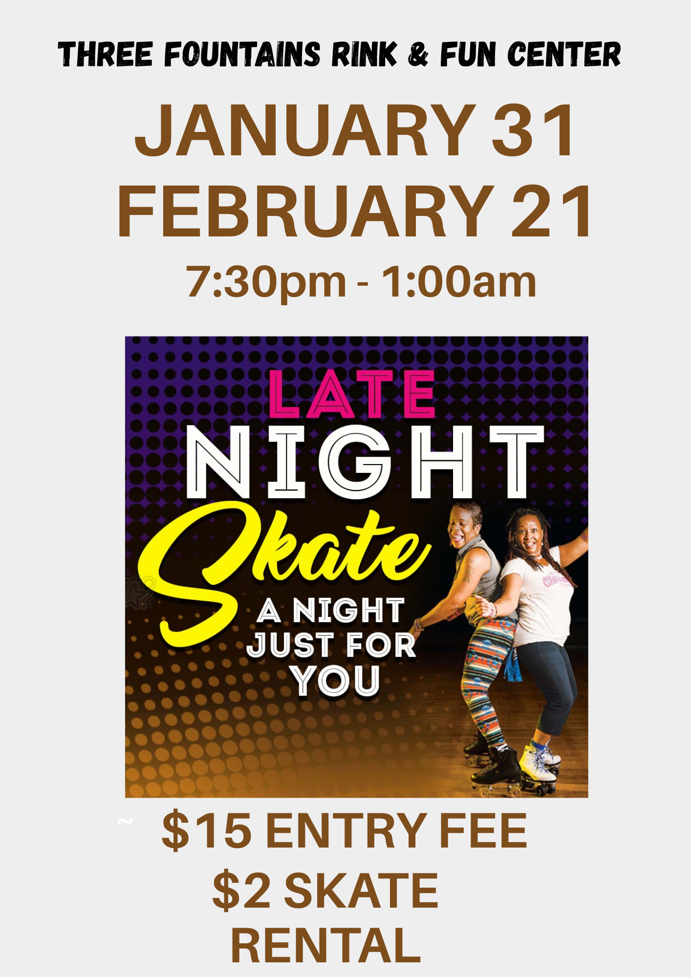 At Three Fountains Rink & Fun Center, we welcome skaters of all ages and skill levels. Our smooth rink is perfect for beginners and experienced skaters alike. Join us for themed nights, lessons, and parties that create memories! Safety is a priority; we offer rental skates for a secure experience. Our friendly staff is ready to assist you with skating tips and group activities. Lace up and enjoy the thrill of roller skating! We can’t wait to see you on the rink!